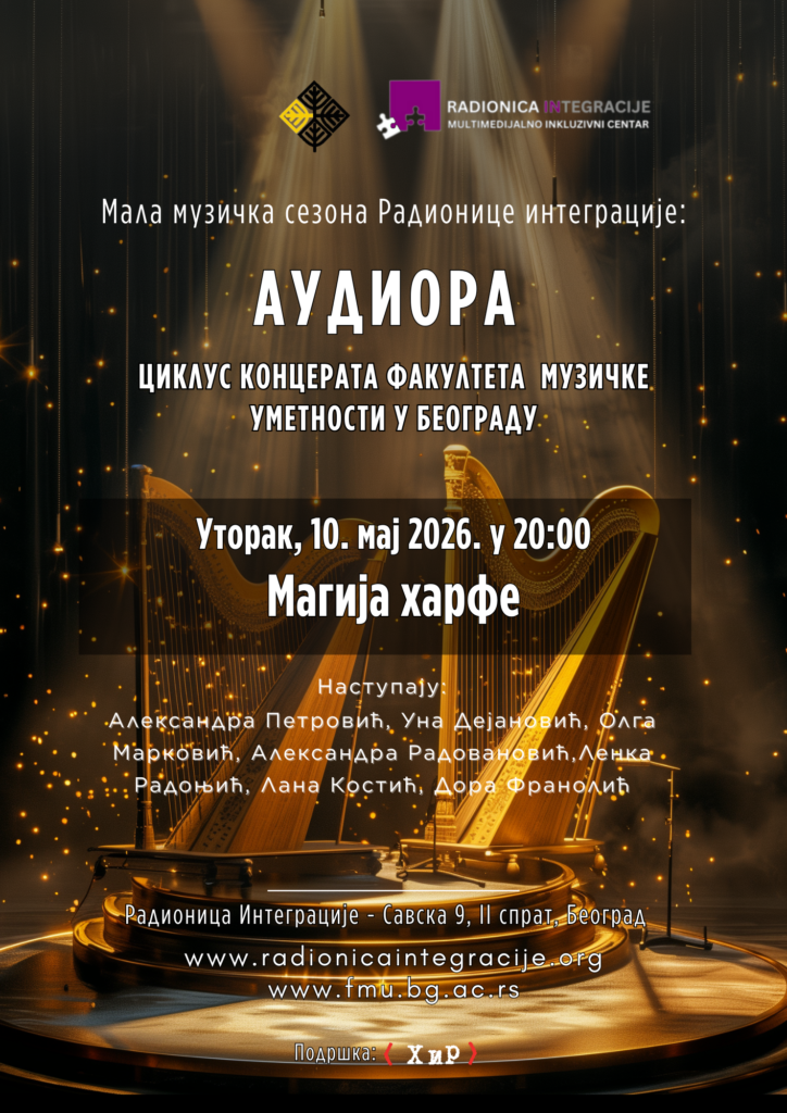 Nakon koncerta studenata Katedre za džez i popularnu muziku, koji je izazvao veliko interesovanje publike i ispunio prostor do poslednjeg mesta, u utorak, 10. marta u 20 časova, ciklus AUDIORA donosi novi program: koncert „Magija harfe”, posvećen instrumentu jedinstvene vizuelne elegancije i zvučne suptilnosti.