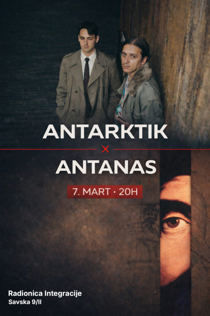 Kao deo programa Mala muzička sezona Radionice Integracije nastupiće dva posebna sastava: Antarktik koji nosi tople, sanjive instrumentale, umotane u zavodljive melodije i hipnotičke ritmove, i Antanas koji ovim koncertom obeležava 45 godina umetničkog rada, a publici će predstaviti svoj rad kroz ambijentalnu i elektronsku muziku.